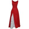 Ľanové šaty s výstrihom, cez ktorý je vidieť krásnu čipkovanú spodničku. Dlhé hladké ľanové šaty nezdobené, v páse prestrihnuté, rozšírená sukňa. Vpredu rozstrih po stehno. Okrúhly výstrih, bez rukávov. Vzadu šnurovačka pre jednoduchú úpravu šiat na postavu.