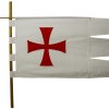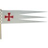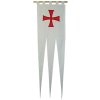 Biela zástava s vyšitým  červeným krížom a troma cípmi, obojstranné prevedenie. Kríž je vyrobený z látky (vyšívaný priamo na zástavu). Rozmery 60 x 200 cm.