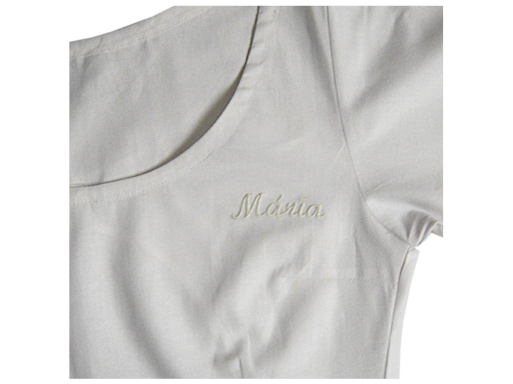 Vyšívanie mena na výrobok. Výška písmen: VEĽKÉ - 2 cm, malé - 1 cm.