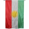 Zástava Kurdistanu. Rozmery 150 x 100 cm, orientácia vodorovne alebo zvislo. Látková šitá zástava (nie potlač). Uchytenie tunel na žrď.