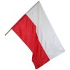 Zástava Poľska. Rozmery 150 x 100 cm, orientácia vodorovne alebo zvislo. Látková šitá zástava (nie potlač). Uchytenie tunel na žrď.