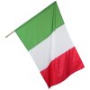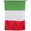 Zástava Talianska. Rozmery 150 x 100 cm, orientácia vodorovne alebo zvislo. Látková šitá zástava (nie potlač). Uchytenie tunel na žrď.