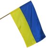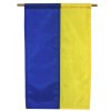 Zástava Ukrajiny. Rozmery 150 x 100 cm, orientácia vodorovne alebo zvislo. Látková šitá zástava (nie potlač). Uchytenie tunel na žrď.